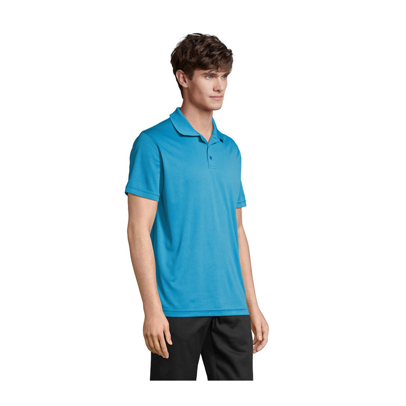 POLO SOL'S PITCHER UNISEX, polo deportivo, 100% poliéster reciclado, manga corta, corte cosido, tapeta reforzada con 3 botones tono sobre tono, cinta en el cuello, cuello de canalé, apto para sublimación. Acerca de la correspondencia de tallas, consulte la tabla de tallas en la sección de documentación del producto.