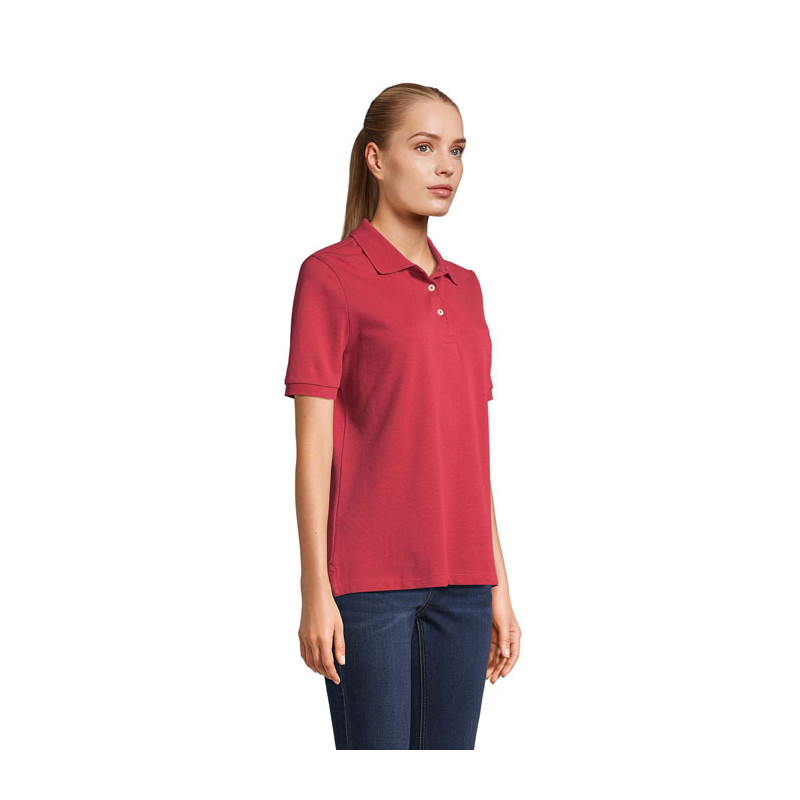 POLO SOL'S PACIFIC WOMEN, polo para mujer, 100% algodón peinado hilado en anillos, corte nuevo - corte cómodo, manga corta, corte cosido, cuello y puños de canalé con elastano, cinta en el cuello, tapeta reforzada con 3 botones crudos, dobladillo recto con aberturas laterales reforzadas, botón de repuesto en la costura lateral interior. Para la correspondencia de tallas, consulte la tabla de tallas en la sección de documentación del producto.
