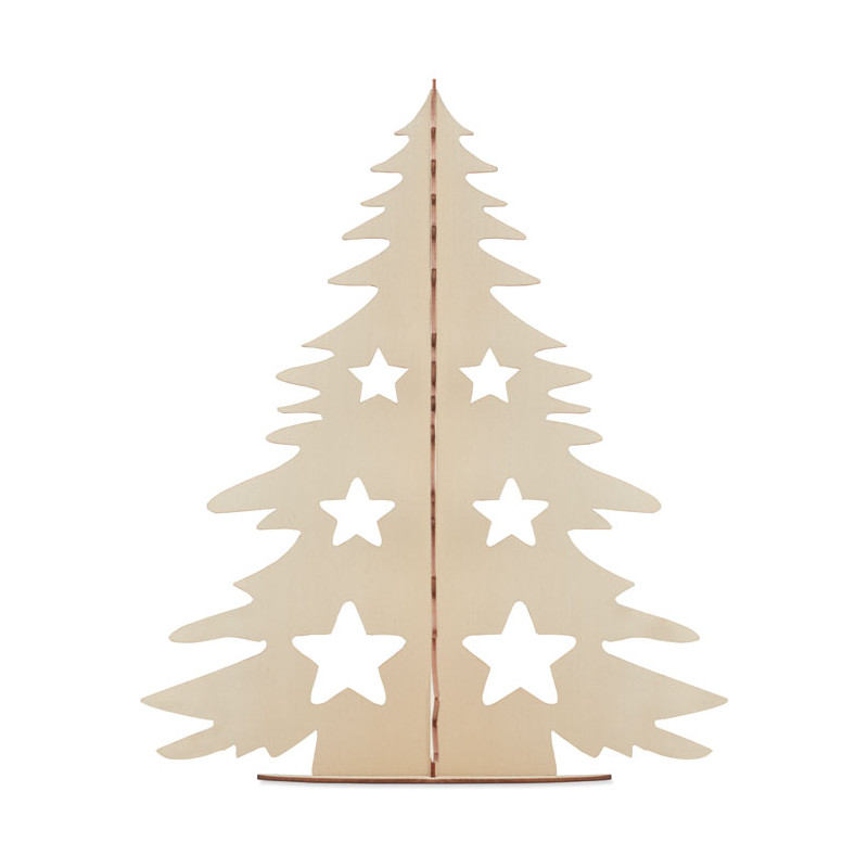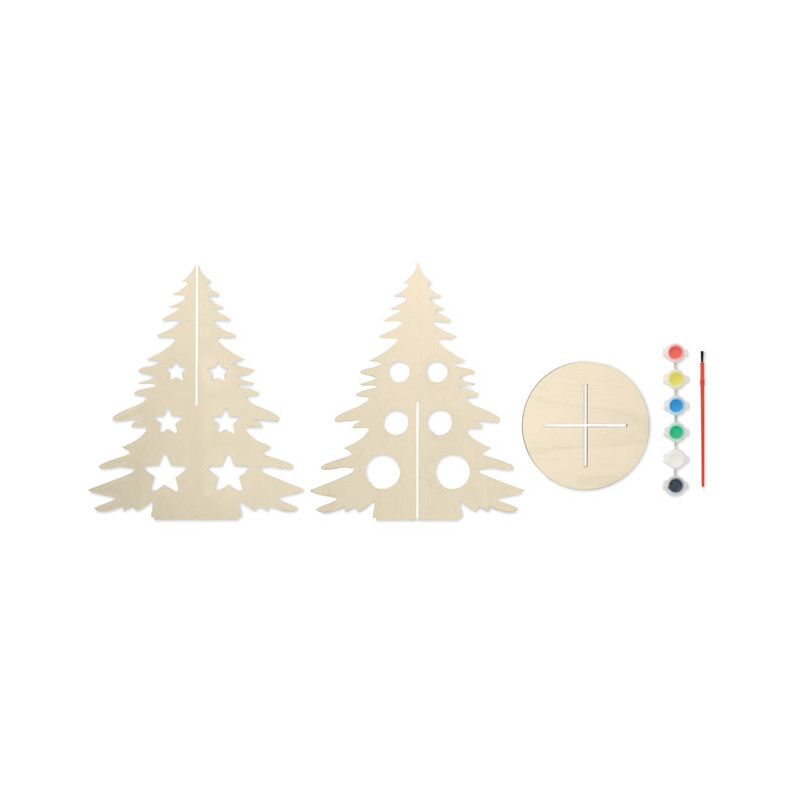 Árbol de Navidad con silueta de madera y 6 acuarelas y pincel.