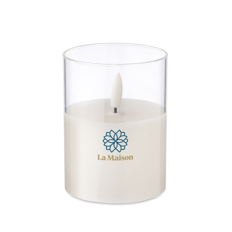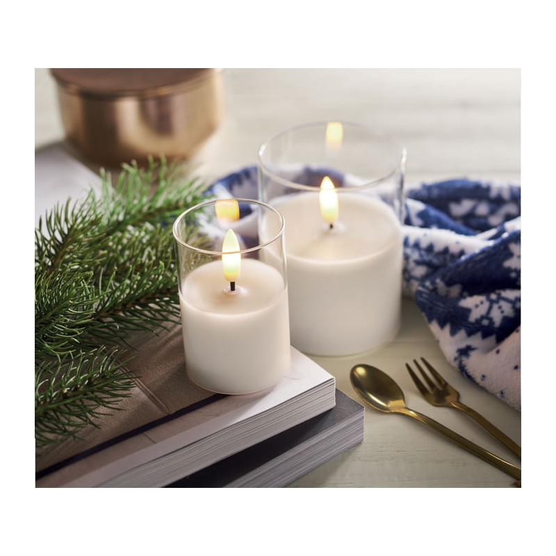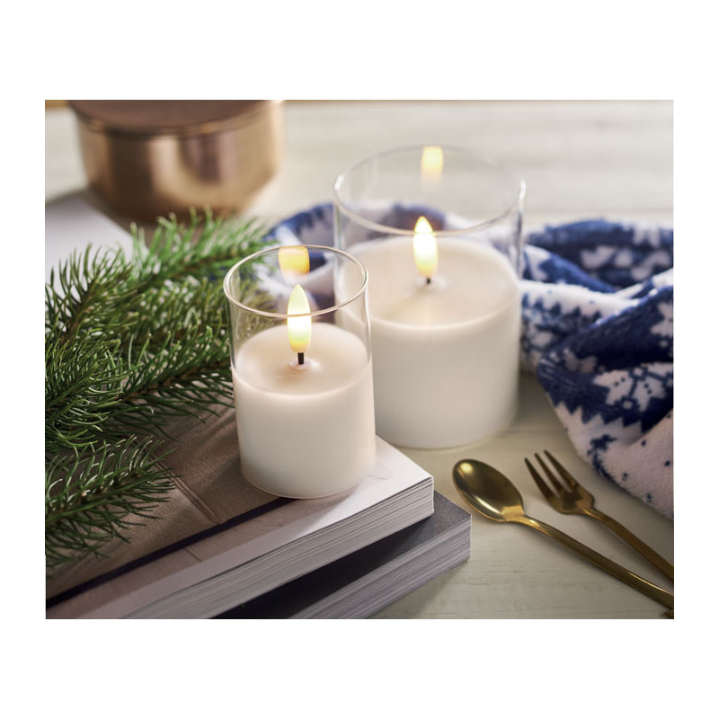 Vela de cera LED con efecto de llama real en soporte de cristal. 2 pilas AA no incluidas.