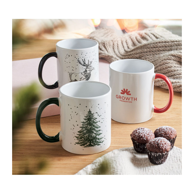 Taza de cerámica con motivos navideños. Embalaje individual en caja de regalo de cartón a juego. Capacidad: 300 ml.