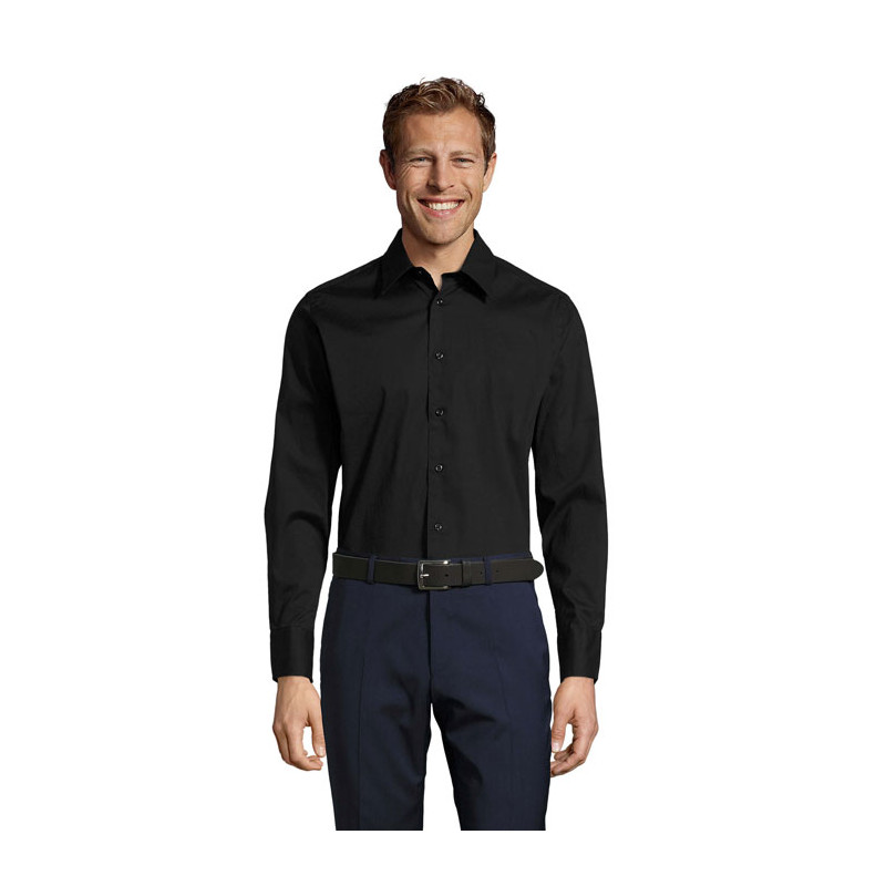 SOL'S BRIGHTON, 97% algodón - 3% elastano, Corte ajustado, Mangas largas, Cuello con un solo botón, Puños con 2 botones y abertura con tapeta en punta, Tapeta de 7 botones tono sobre tono. Para obtener información sobre las tallas, consulte la tabla de tallas en la sección de documentación del producto.