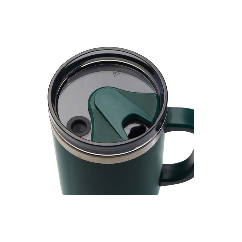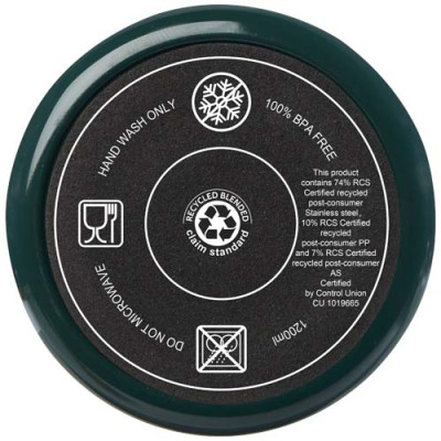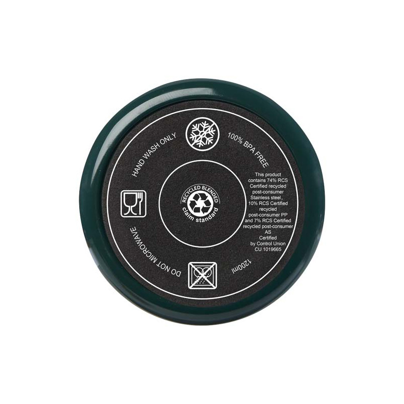 El vaso Melbourne cuenta con aislamiento de aire de doble pared, que mantiene las bebidas calientes hasta 2 horas y frías hasta 4 horas. . La pared interior del vaso está hecha de plástico reciclado y la exterior es de acero inoxidable reciclado con certificación RCS. El vaso tiene una capacidad de 1200 ml para mantener la hidratación durante todo el día con estilo. Dispone de una tapa a presión a prueba de salpicaduras con dos aberturas y cierre giratorio. Incluye una pajita reciclada apta para uso alimentario. Lavado a mano únicamente.