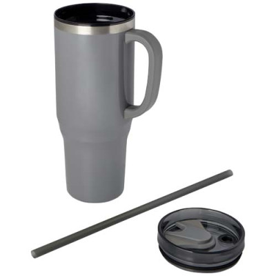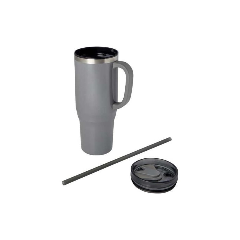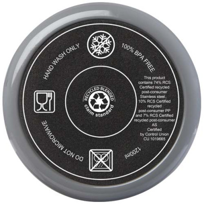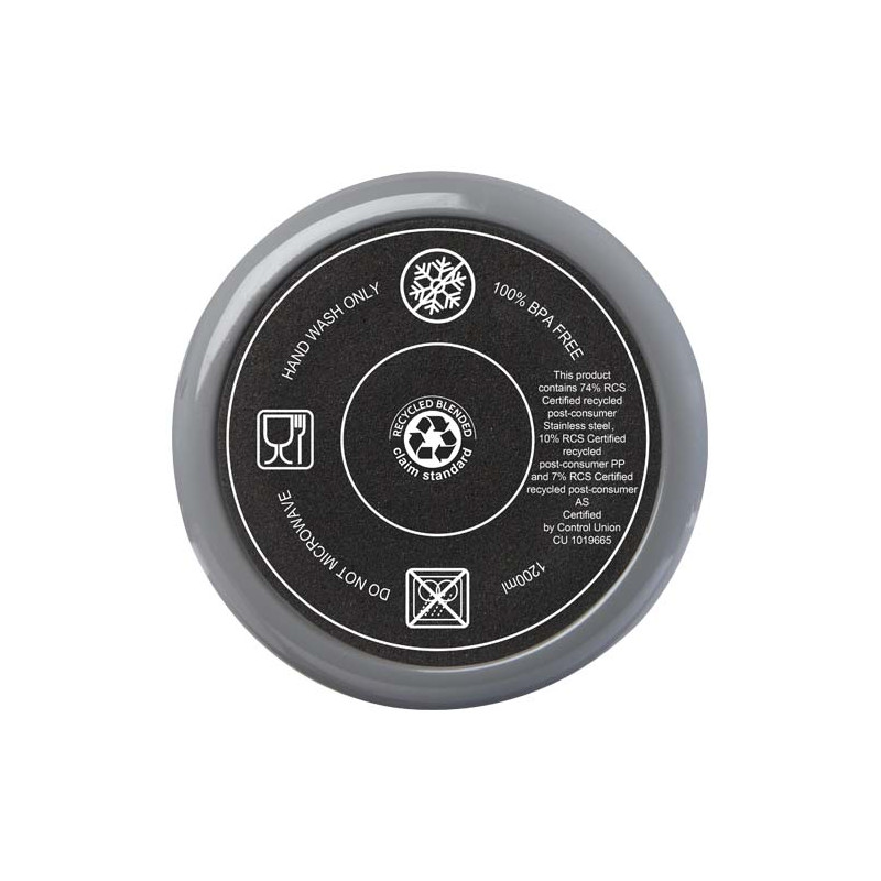 El vaso Melbourne cuenta con aislamiento de aire de doble pared, que mantiene las bebidas calientes hasta 2 horas y frías hasta 4 horas. . La pared interior del vaso está hecha de plástico reciclado y la exterior es de acero inoxidable reciclado con certificación RCS. El vaso tiene una capacidad de 1200 ml para mantener la hidratación durante todo el día con estilo. Dispone de una tapa a presión a prueba de salpicaduras con dos aberturas y cierre giratorio. Incluye una pajita reciclada apta para uso alimentario. Lavado a mano únicamente.