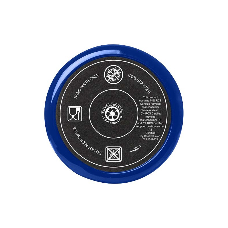 El vaso Melbourne cuenta con aislamiento de aire de doble pared, que mantiene las bebidas calientes hasta 2 horas y frías hasta 4 horas. . La pared interior del vaso está hecha de plástico reciclado y la exterior es de acero inoxidable reciclado con certificación RCS. El vaso tiene una capacidad de 1200 ml para mantener la hidratación durante todo el día con estilo. Dispone de una tapa a presión a prueba de salpicaduras con dos aberturas y cierre giratorio. Incluye una pajita reciclada apta para uso alimentario. Lavado a mano únicamente.