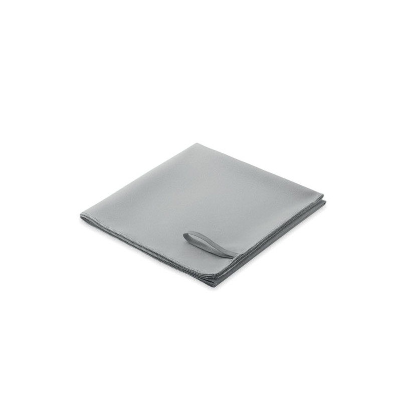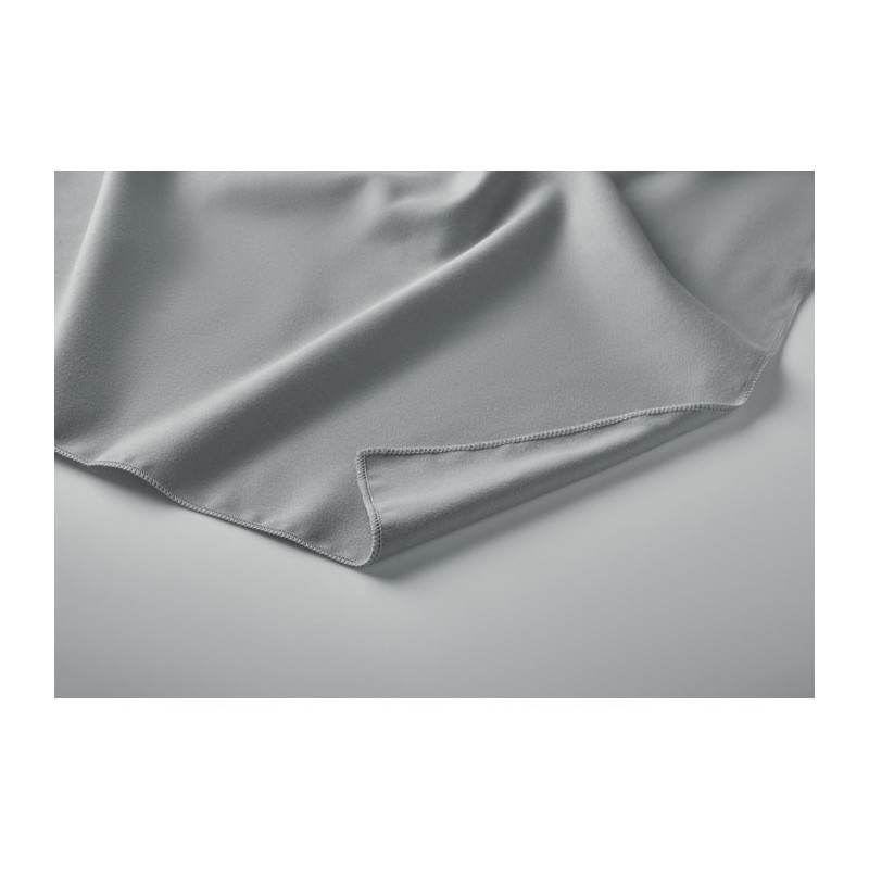 Toalla de microfibra fabricada en 90% poliéster y 10% poliamida con mango elástico. Ligera y de secado rápido. Tamaño 50 cm x 100 cm.