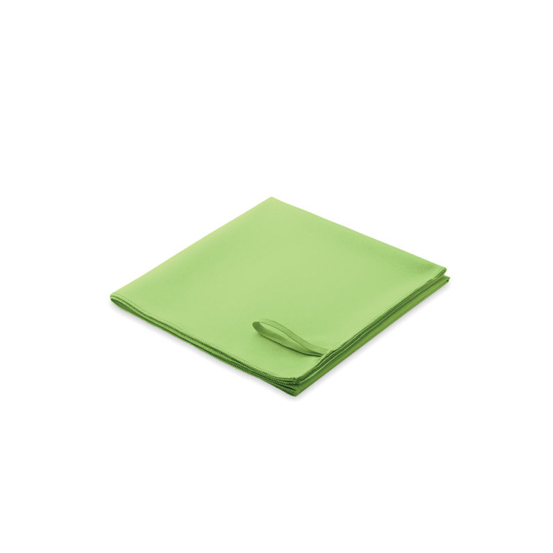 Máxima absorción y secado rápido. Esta toalla de microfibra con asa elástica es el regalo personalizado indispensable para natación, gimnasio y viajes.
