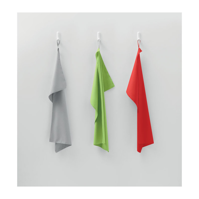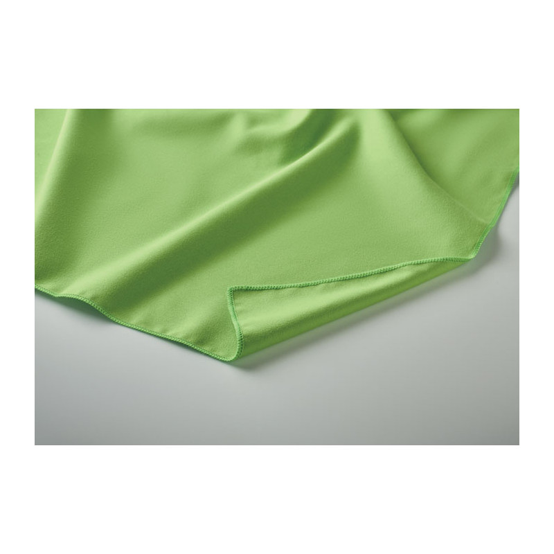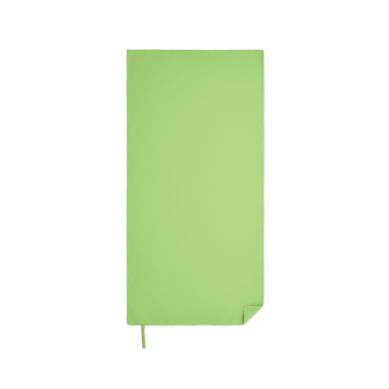Toalla de microfibra fabricada en 90% poliéster y 10% poliamida con mango elástico. Ligera y de secado rápido. Tamaño 50 cm x 100 cm.