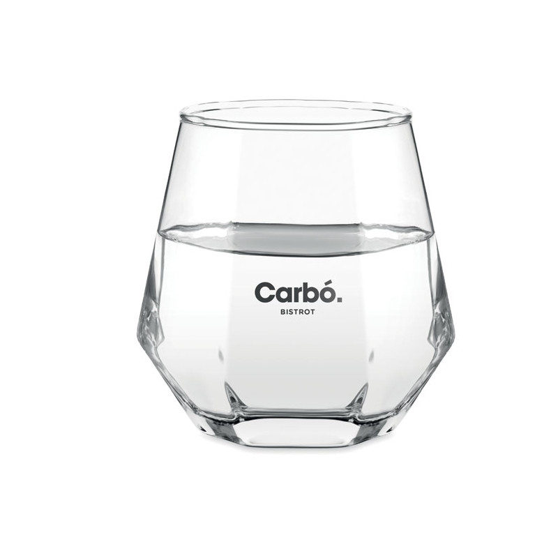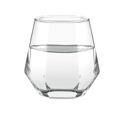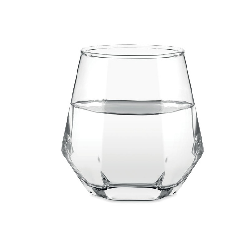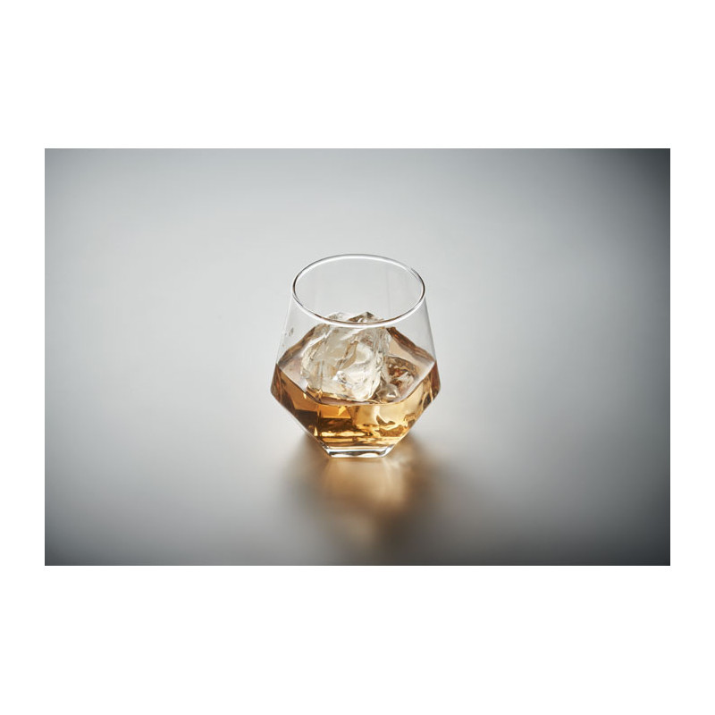 Vaso corto inclinado en forma de rombo geométrico. Para whisky u otros licores. Capacidad: 300 ml.