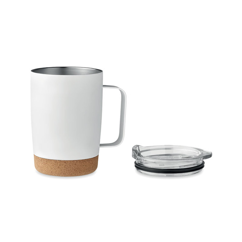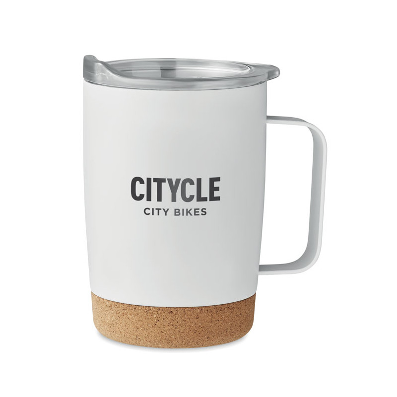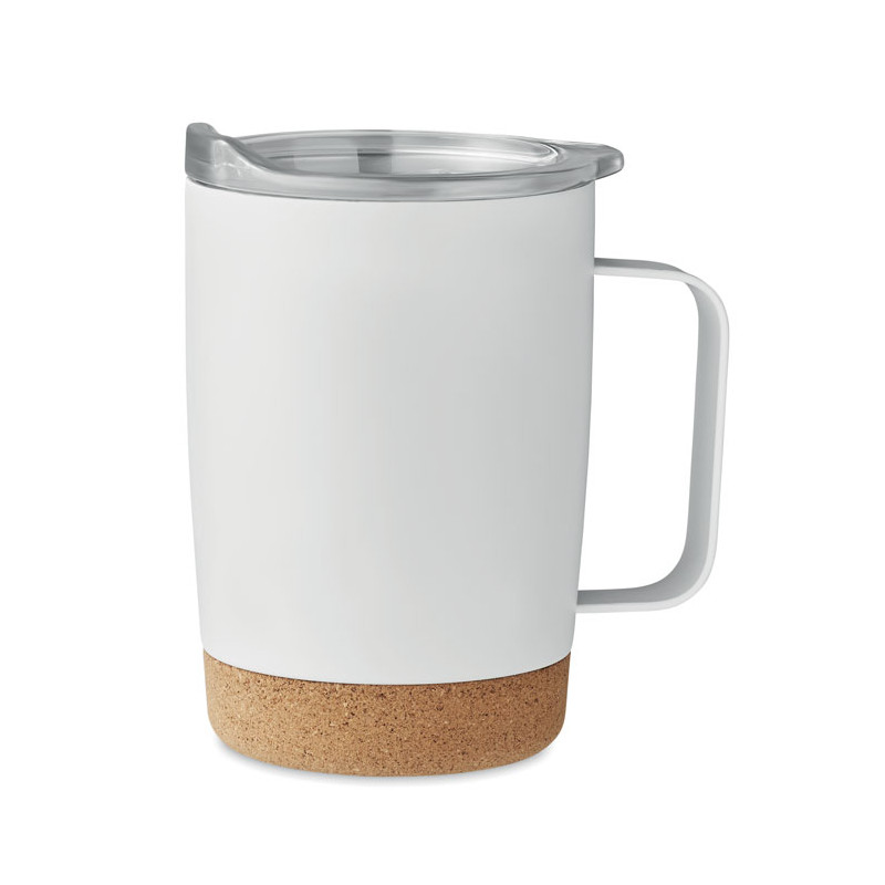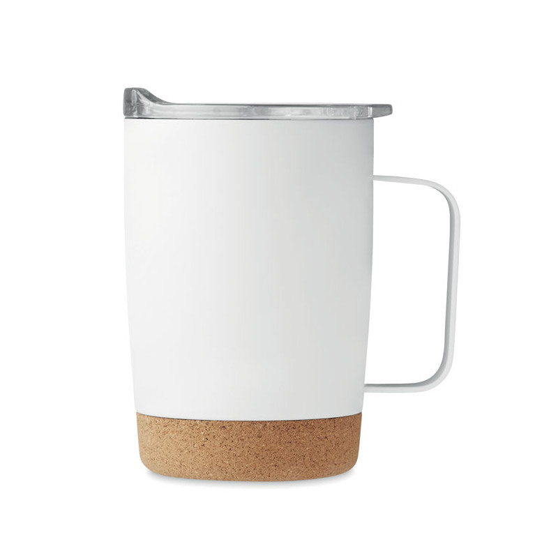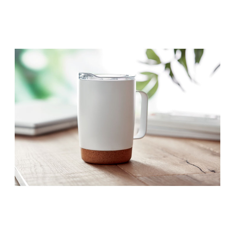 Vaso de acero inoxidable de doble pared con base de corcho y tapa corredera con cierre. Capacidad: 300 ml. Llévate esta taza de viaje para tomar tu café, té o chocolate caliente favoritos estés donde estés. Gracias a la tapa deslizante, se puede cerrar para que no se derrame. La base de corcho le da un toque natural único.