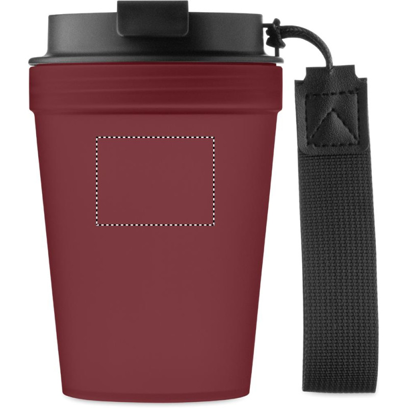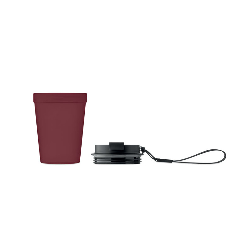 Vaso de pared simple de PP, con correa de poliéster RPET. Sin fugas. Capacidad: 300 ml. Al tratarse de un vaso de pared simple, puede producirse transferencia de calor.