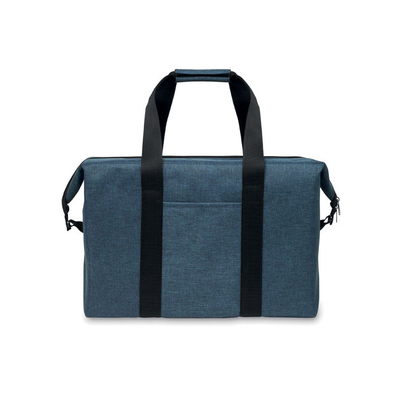 Cooler bag in RPET 300D cationic polyester. Isolation material: 3mm foam laminated with aluminium foil. Capacity 3L.