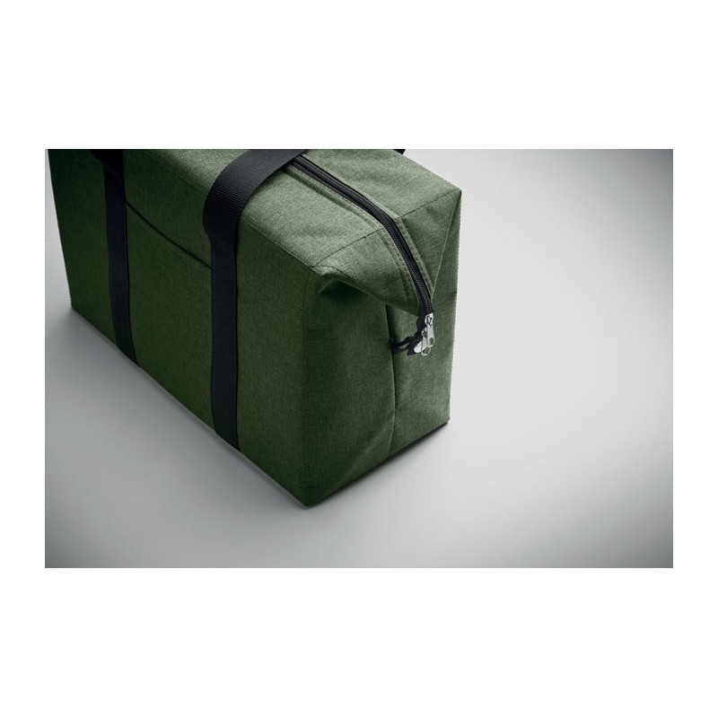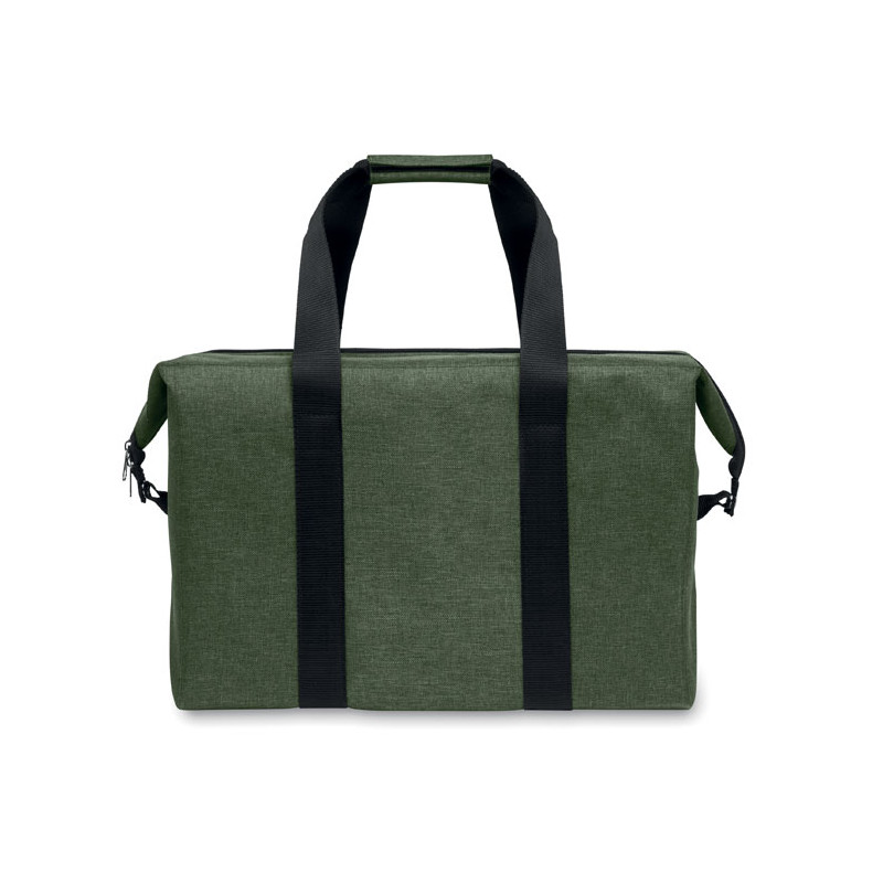 Cooler bag in RPET 300D cationic polyester. Isolation material: 3mm foam laminated with aluminium foil. Capacity 3L.