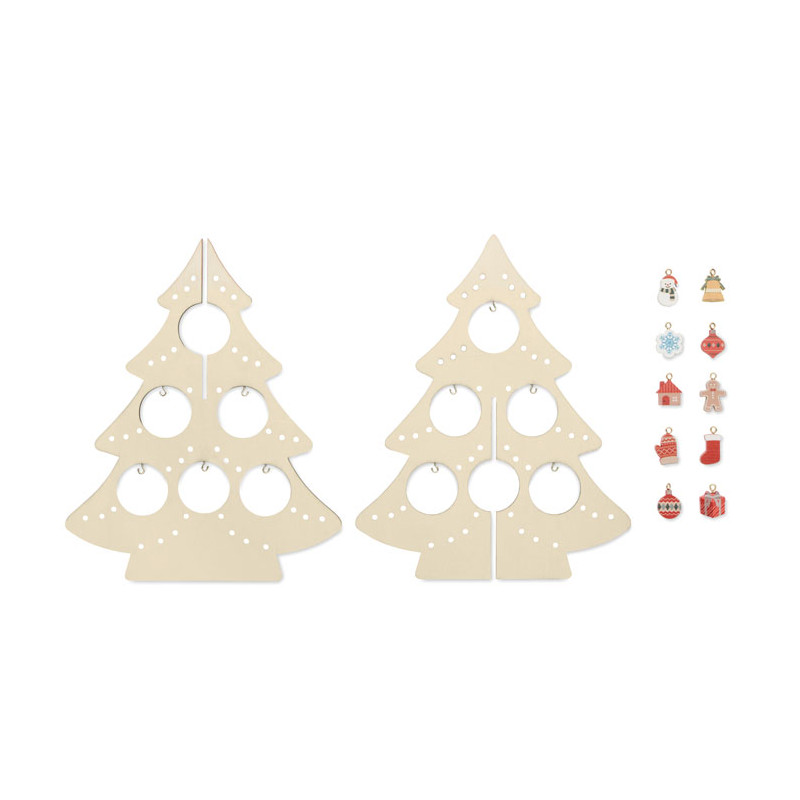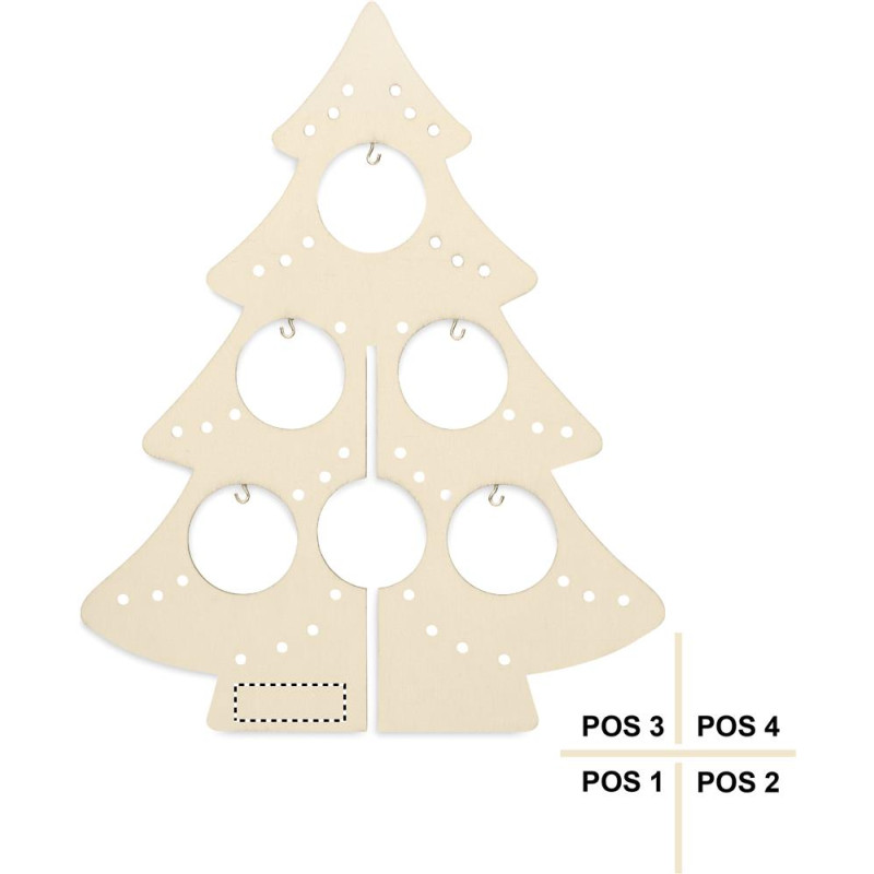 Plywood silhouette Christmas tree with 10 assorted ornaments. Assembly required.