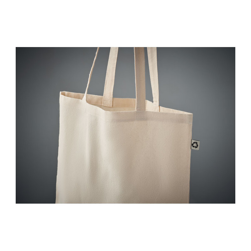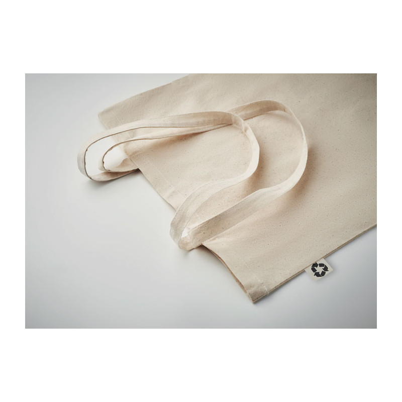 Recycled post-consumer cotton shopping bag (65% recycled cotton, 35% regular cotton) with long handles. 140 gr/m².