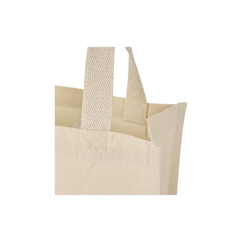 The mini Odessa gusset tote bag, made from 100% GRS certified recycled 220 g/m² cotton, is designed for comfortable carrying with its 35 cm handles and main gusset compartment. Perfect for holding a tablet, a book, or a few daily essentials, this compact tote bag is an ideal grab-and-go choice for light errands or casual outings. The available print methods are also GRS certified, ensuring that the entire supply chain is transparent and certified. Made in India.