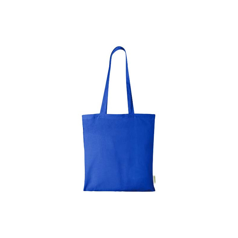 Tote bag made from 100% OCS certified 140 g/m² organic cotton originating from India, featuring a large open main compartment providing plenty of space to carry around all of the essentials. The 32 cm long handles makes it comfortable and easy to carry around wherever you go. Resistance up to 5 kg weight. Volume capacity: 7 litres.