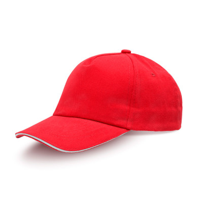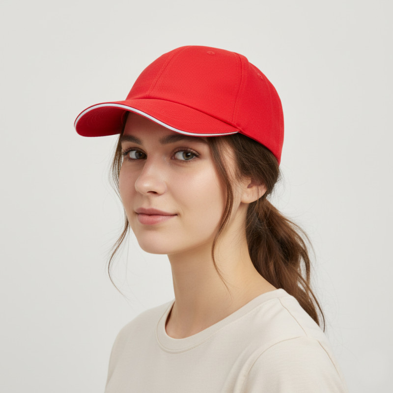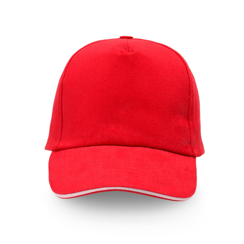 Cap for adults, sandwich peak, made of cotton twill. This five-panel cap features an adjustable metal closure and a contrasting detail on the peak. Front panel ideal for recording.