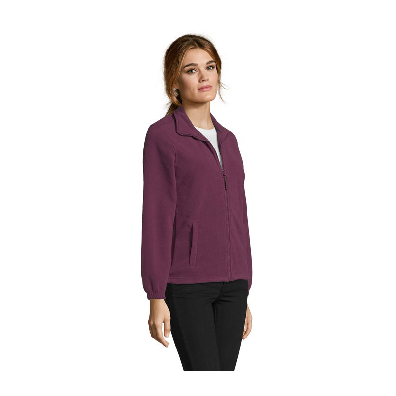 SOL'S NORTH WOMEN, WOMEN'S ZIPPED FLEECE JACKET, 100% polyester high density FLEECE 300, Short cut, Anti-pilling, Reinforcing tape on neck, High lined collar, 2 zipped pockets with flap, Fitted cut, Elasticated cuffs, Back half moon yoke, Elasticated drawstring at bottom. About sizes matching, please refer to the size chart in the product documentation section.
