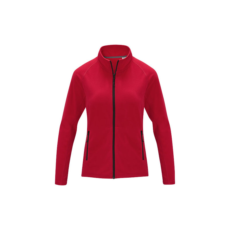 The Zelus women's fleece jacket – the perfect example of lightweight comfort. The fleece jacket features interior custom branding options for a personal touch. The tearaway-cutaway main label ensures tagless comfort, while the contrast reversed coil zipper adds a modern flair. Keep your essentials secure in the front pockets with zippers. Made from polyester micro fleece of 140 g/m², this jacket offers luxurious softness and warmth. Embracing a fusion of practicality and elegance – this jacket is a must-have. This jacket is designed with a fitted shape for a feminine look.