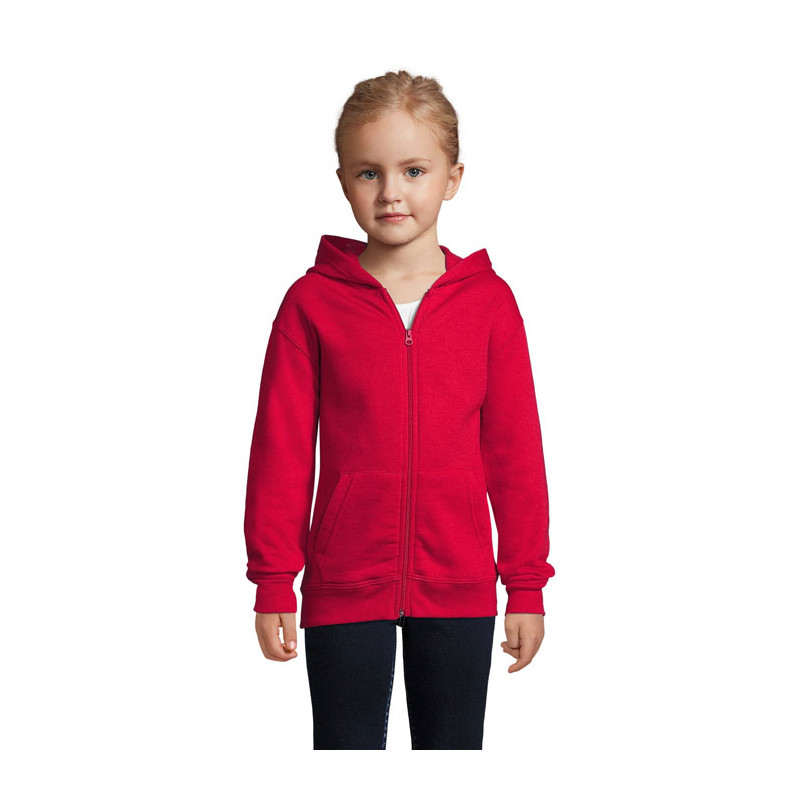 SOL'S STONE KIDS, KIDS' ZIP HOODIE, 50% Ringspun cotton - 50% polyester BRUSHED FLEECE 260, Set-in sleeves, 2 kangaroo pockets, Hood, Ribbed cuffs and bottom, Tubular. About sizes matching, please refer to the size chart in the product documentation section.