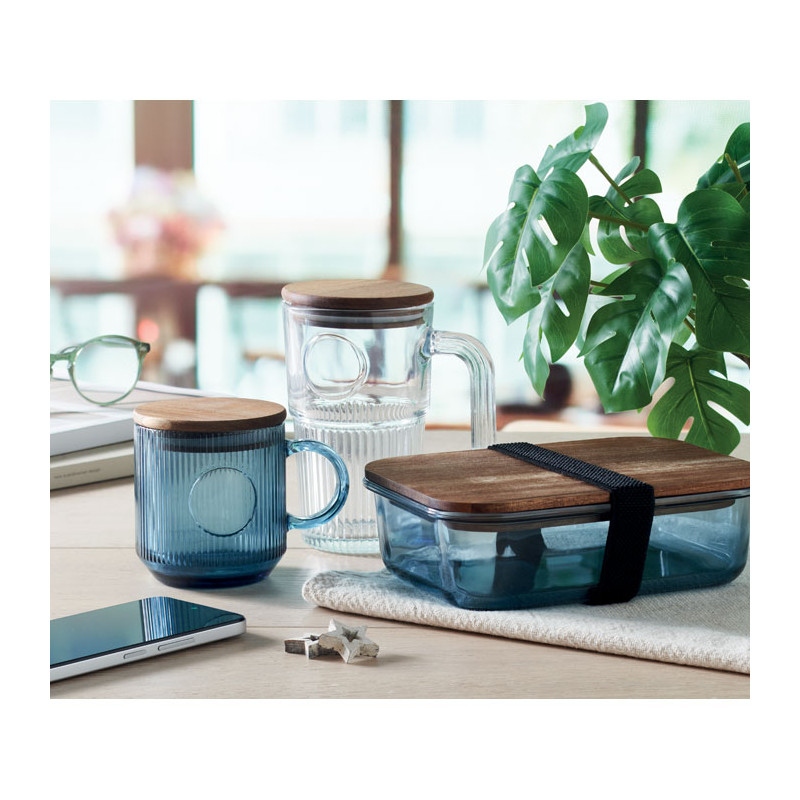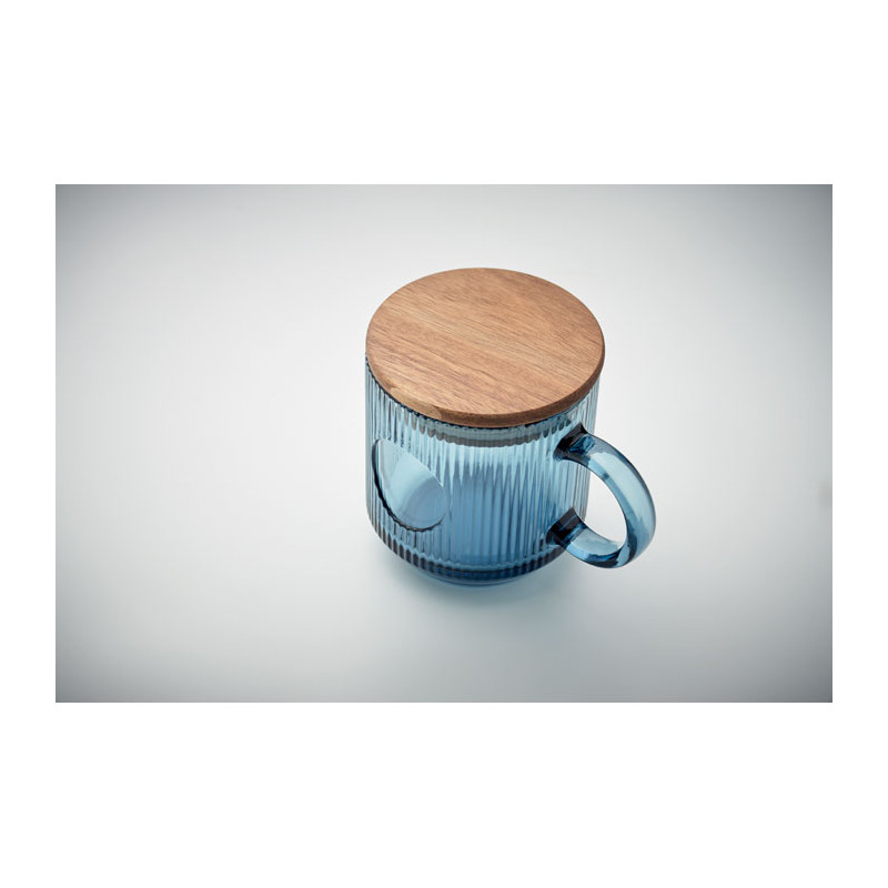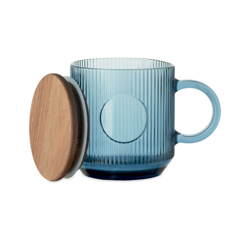 Ribbed glass mug with acacia lid. Capacity: 300 ml. FSC®-certified | FSC 100%, W16.3, FSC-C213206