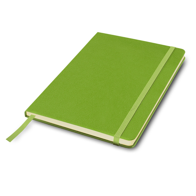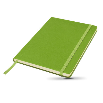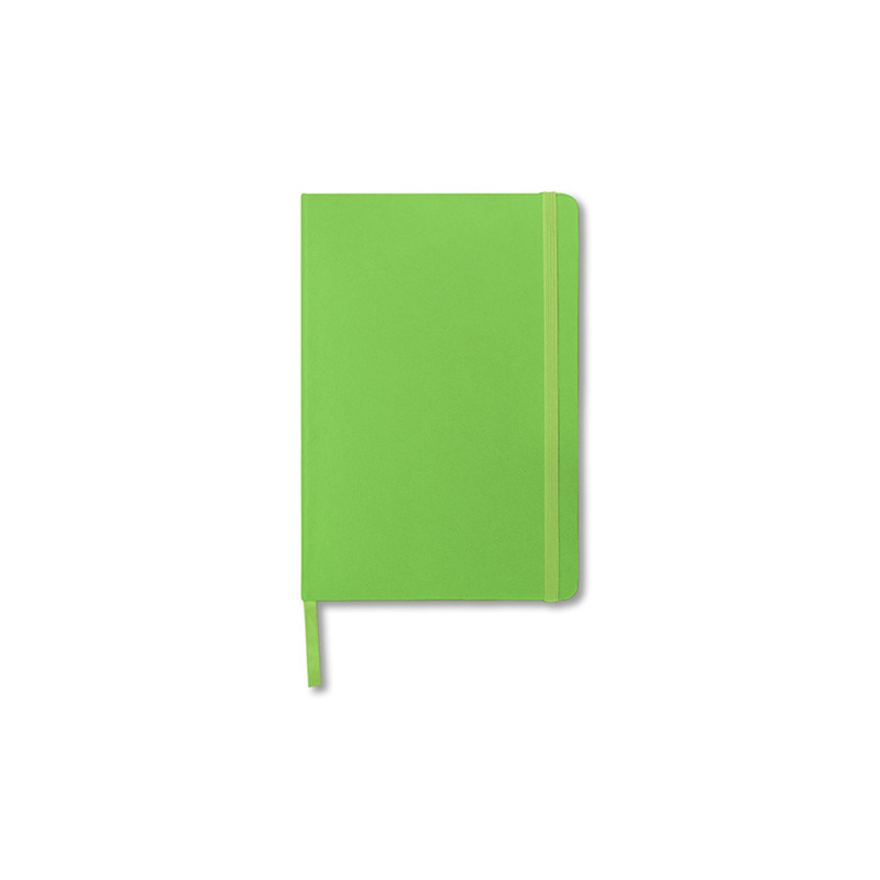 Notepad A5, with cardboard cover and pouch. Block with 80 smooth sheets of 70g. Colored cover, with elastic and ribbon in the same color. Great for customizing. Join the beauty of simplicity.