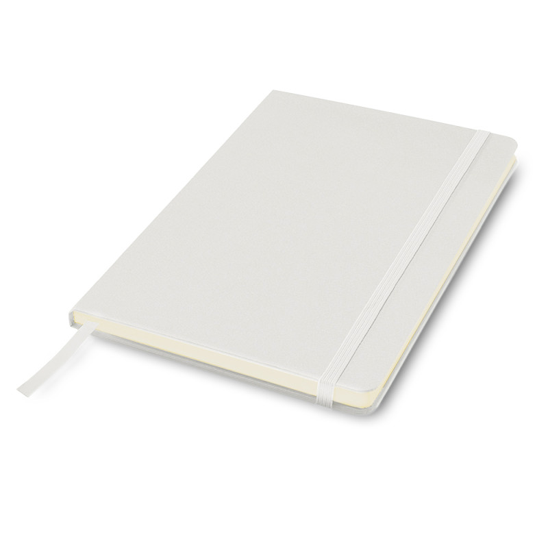 Notepad A5, with cardboard cover and pouch. Block with 80 smooth sheets of 70g. Colored cover, with elastic and ribbon in the same color. Great for customizing. Join the beauty of simplicity.