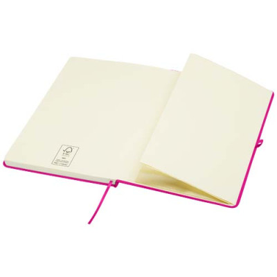 The Spectrum Plus A5 hard cover notebook with rounded corners is not only an office essential but also a great opportunity to promote your brand. The cardboard notebook has a soft-feel cover and 80 lined cream coloured sheets of 70 g/m², ideal for writing down quick ideas or long notes. The notebook has a pen loop, elastic closure, ribbon marker and accordion pocket.