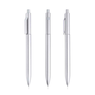 Ballpoint pen made from recycled ABS, featuring a functional design that reflects a commitment to sustainability. The upper section showcases a striped embossed pattern covering about one-third of the pen’s length, seamlessly incorporating the clip. Equipped with a push-button mechanism and black ink, it is a practical and reliable choice for everyday use. The metallic colours add a sophisticated touch, making it ideal for professional settings or stylish promotional g