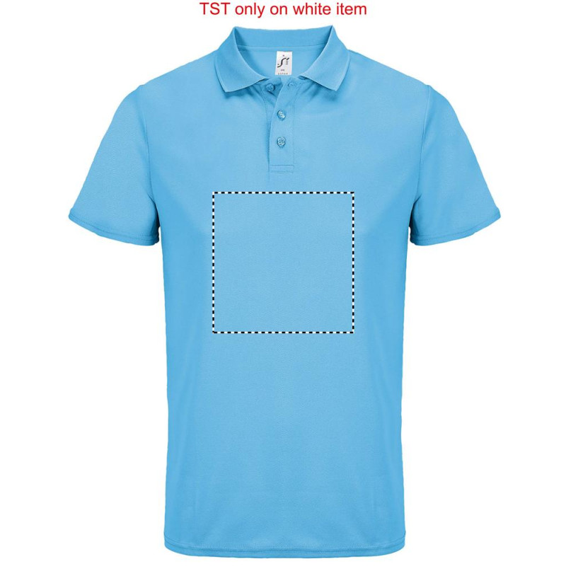 SOL'S PITCHER UNISEX POLO, sports polo shirt, 100% recycled polyester, short sleeves, sewn cut, reinforced placket with 3 tone-on-tone buttons, neckband, ribbed collar, suitable for sublimation. For size information, please refer to the size chart in the product documentation.