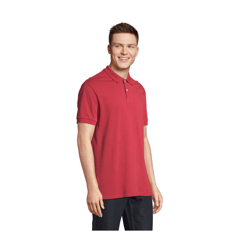 SOL'S PACIFIC POLO MEN, unisex polo shirt, 100% ringspun combed cotton, new fit - comfortable fit, short sleeves, stitched cut, ribbed collar and cuffs with elastane, neck tape, reinforced placket with 2 ecru buttons, straight hem with reinforced side slits, spare button on inside side seam. For size information, please refer to the size chart in the product documentation.