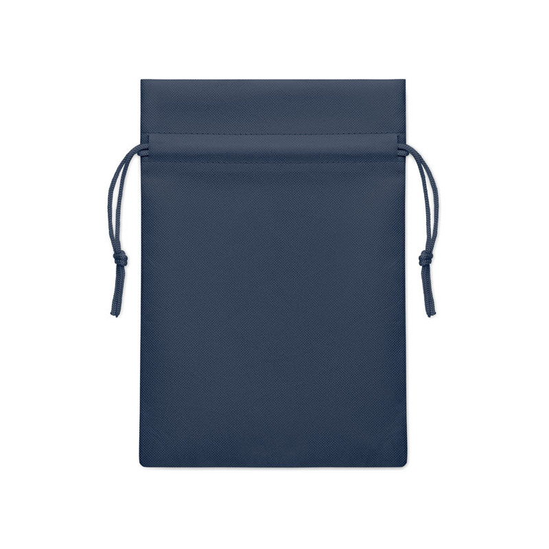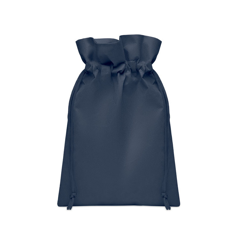 Small gift draw cord bag in RPET non-woven 80 gr/m². Size approx. 20x30 cm.