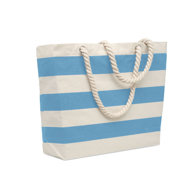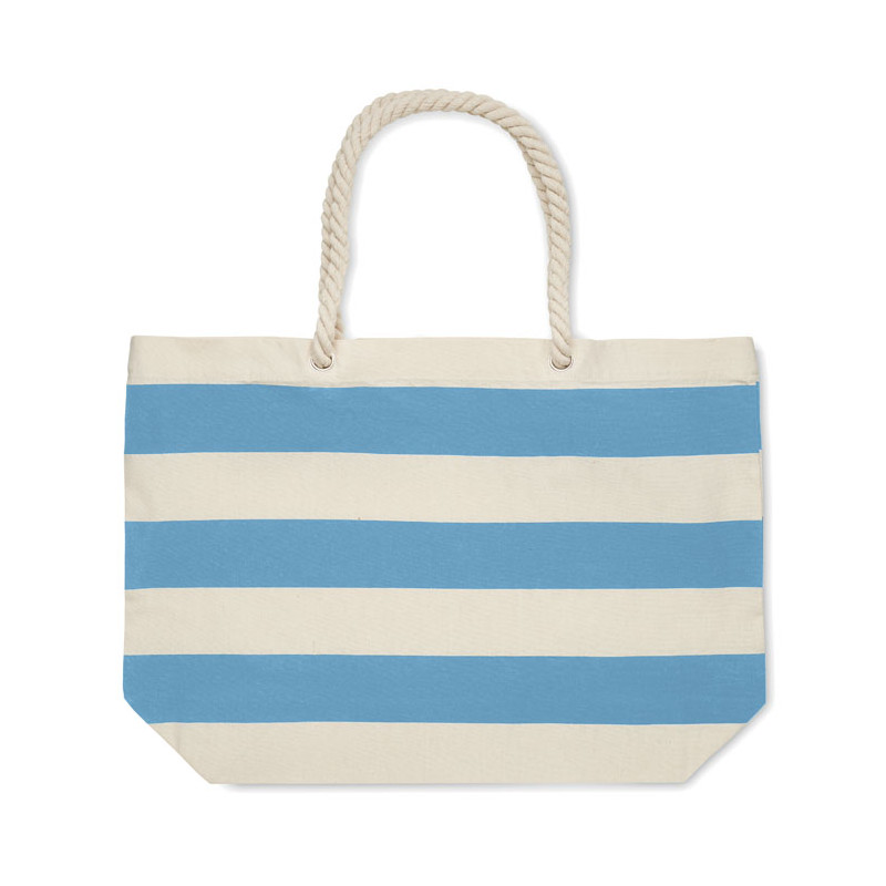 Striped beach or shopping bag in cotton with cord handle. 220 gr/m².