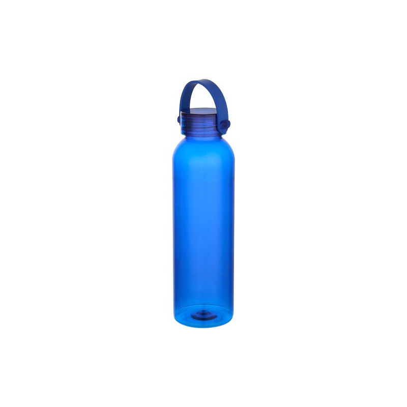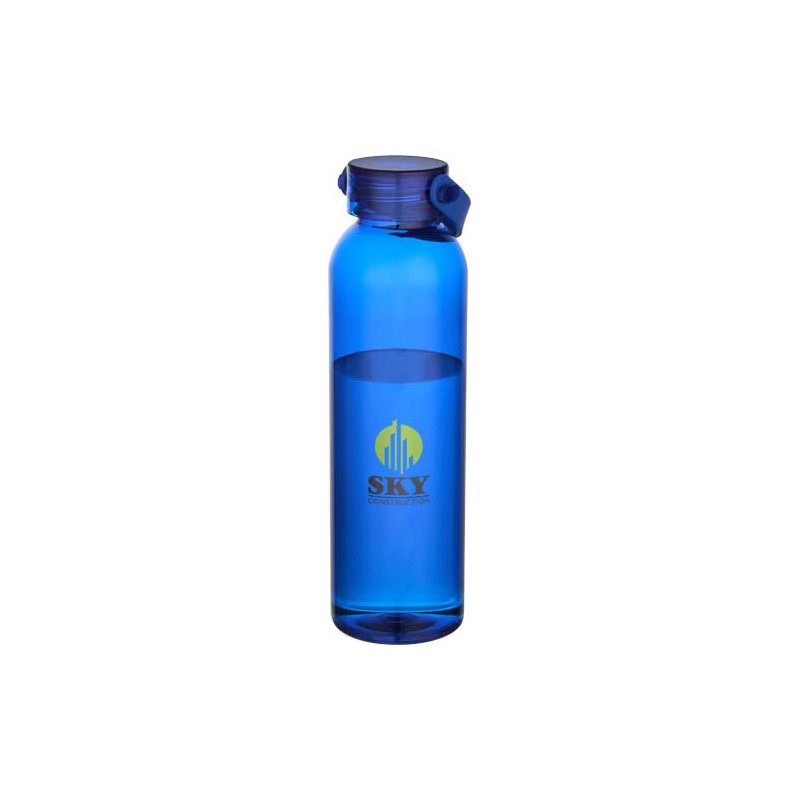 Water bottle made from RCS certified RPET, featuring a convenient silicone carry handle. In compliance with the EFSA approved PET recycling process. Volume capacity: 630 ml.