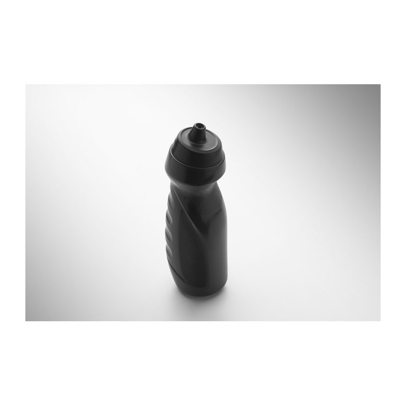 Sports bottle with convenient handgrip in solid PE plastic. Capacity: 700 ml. Leak free.