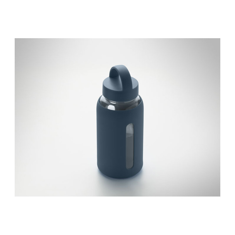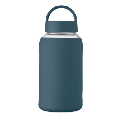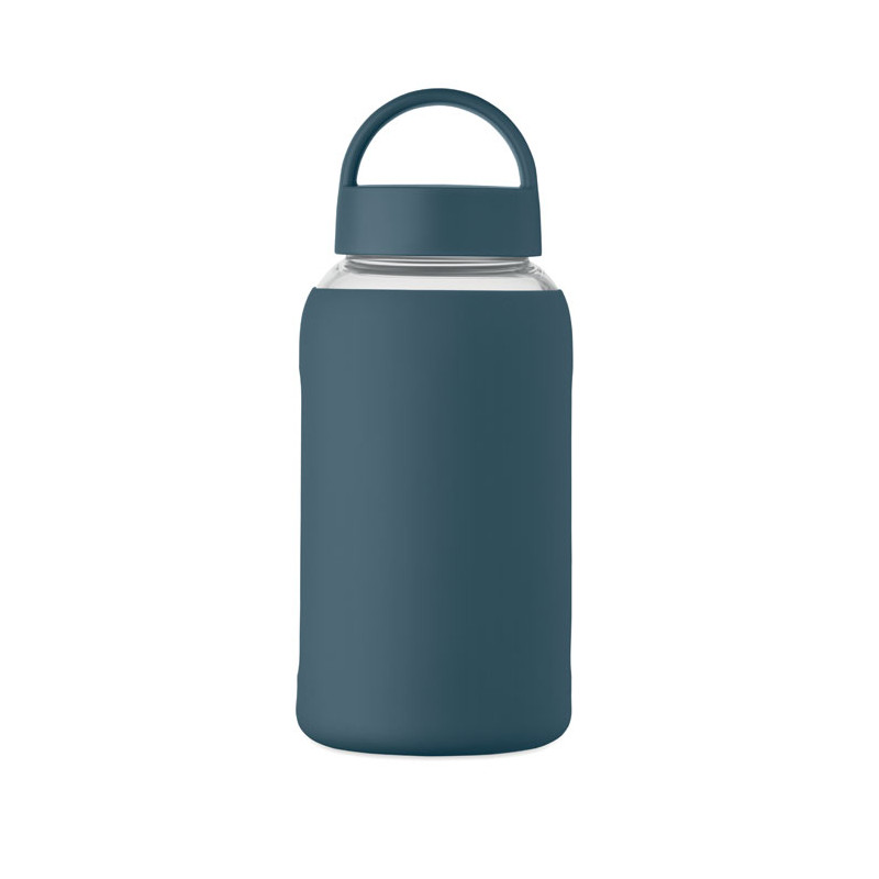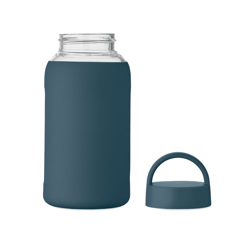 High borosilicate glass bottle with silicone pouch and PP lid with handle. Capacity: 600 ml