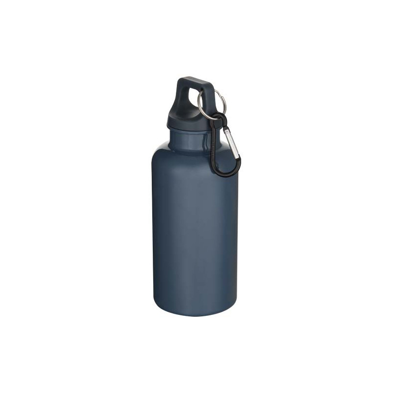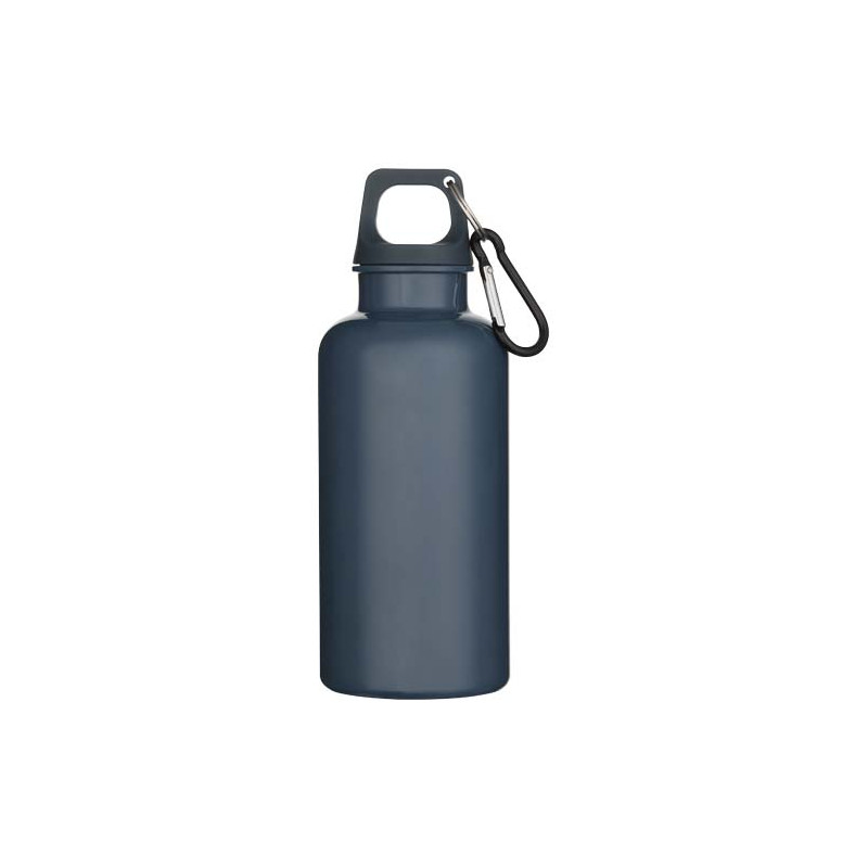 Staying hydrated at all times is possible with this durable yet lightweight 400 ml water bottle made from RCS certified recycled PET. It is the perfect companion while exercising, on day trips or at the office. The single-walled Oregon bottle has a twist-on lid and offers plenty of space to add any kind of logo. Clip the attached carabiner (not suitable for climbing) securely to a bag to avoid losing it. Manufactured in compliance with the EFSA approved PET recycling process.