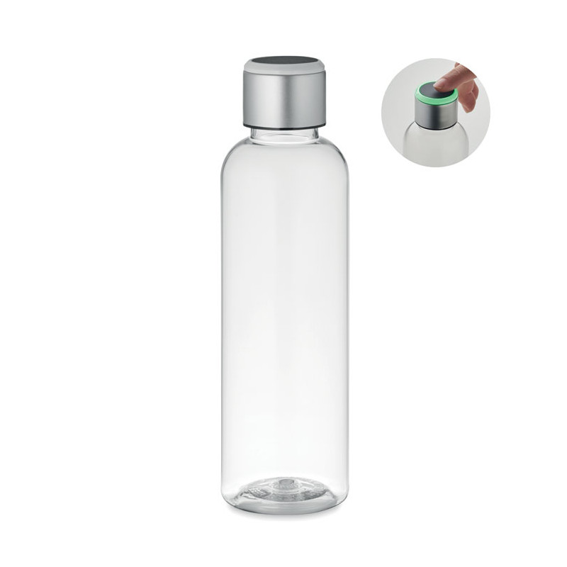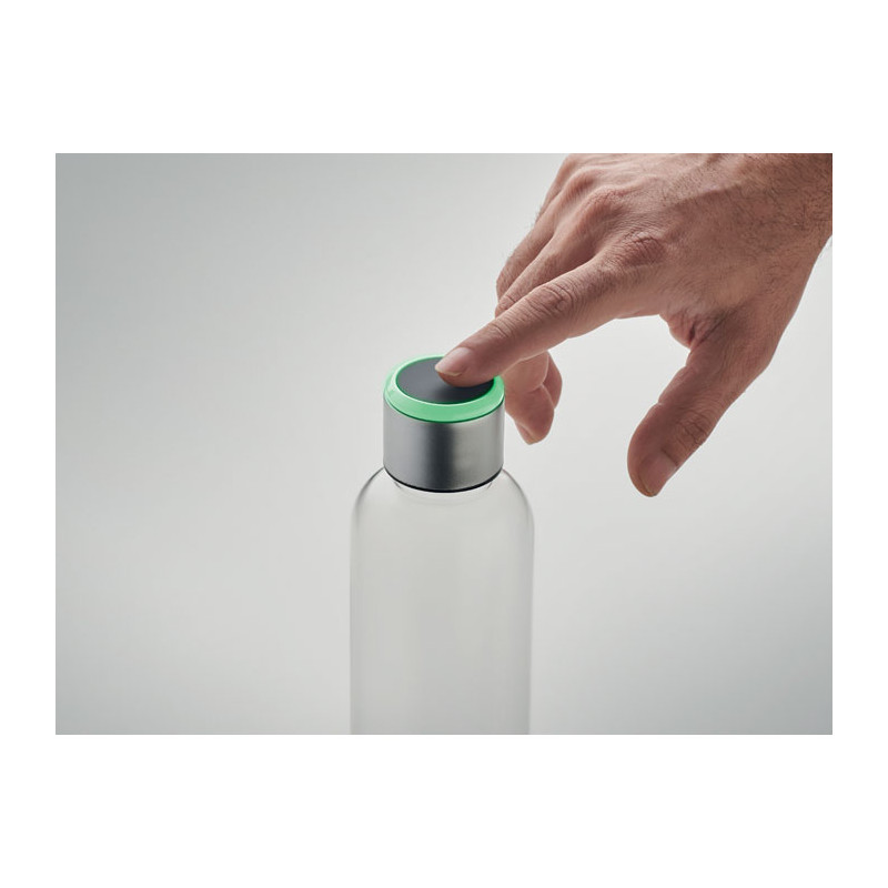 Tritan™ steel bottle with hydration reminder. Sensor light glows every hour reminding you when it is time to drink. Including 1 CR2032 battery. Capacity: 500 ml.