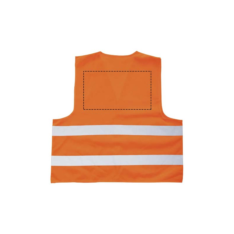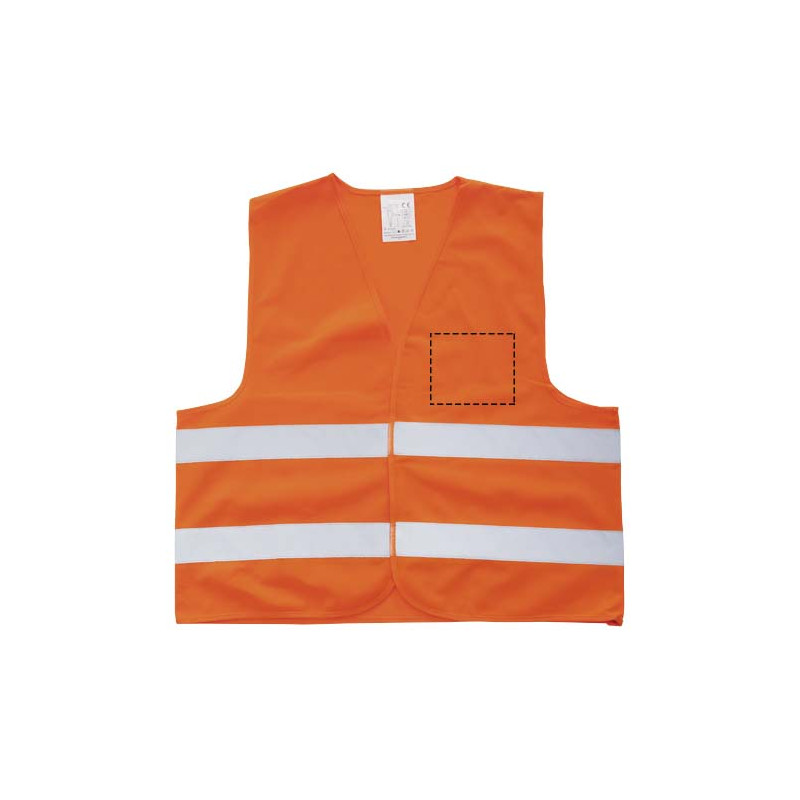 High visibility warning vest Class 2, suitable for persons between 165-180 cm. Large decoration area on the front and on the back of the vest. Visibility clothing for professional use. Fluorescent background and reflective tape. Specification EN ISO 20471:2013+A1:2016. These garments bear CE marking to demonstrate compliance with EU Regulation 2016/425/EU Personal Protective Equipment Category II.