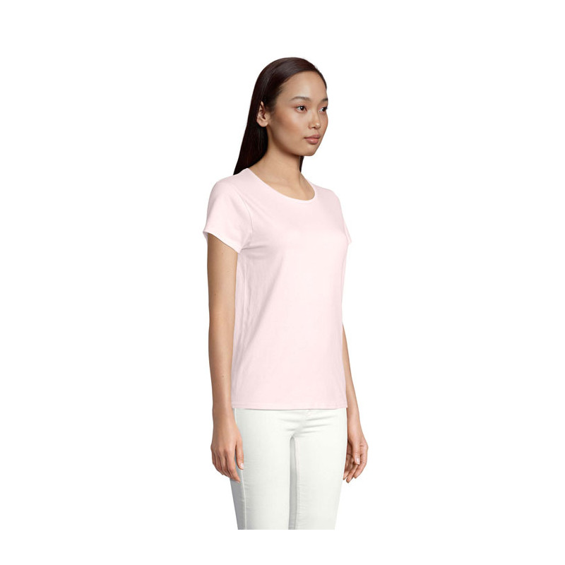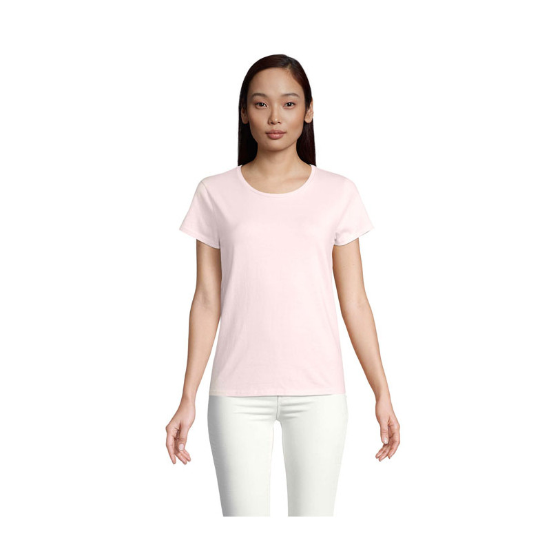 SOL'S CRUSADER WOMEN, women's Round-Neck Fitted Jersey T-Shirt, 100% Organically Grown Cotton, Natural Finish For A Softer And Smoother Feel Jersey 150, 100% Cotton Ribbed Collar, Round Neck, Neck Tape, Fitted Cut, Tubular, (1) Heather Light Green : 60 % Organic Cotton / 40 % Recycled Polyester, (2) Heather Pink : 60 % Organic Cotton / 40 % Recycled Polyester, (3) Heather Beige : 60 % Organic Cotton / 40 % Recycled Polyester, (4) Ash : 98 % Organic Cotton / 2 % Viscose, (5) Grey Melange : 85 % Organic Cotton / 15 % Viscose. About Sizes Matching, Please Refer To The Size Chart In The Product Documentation Section.