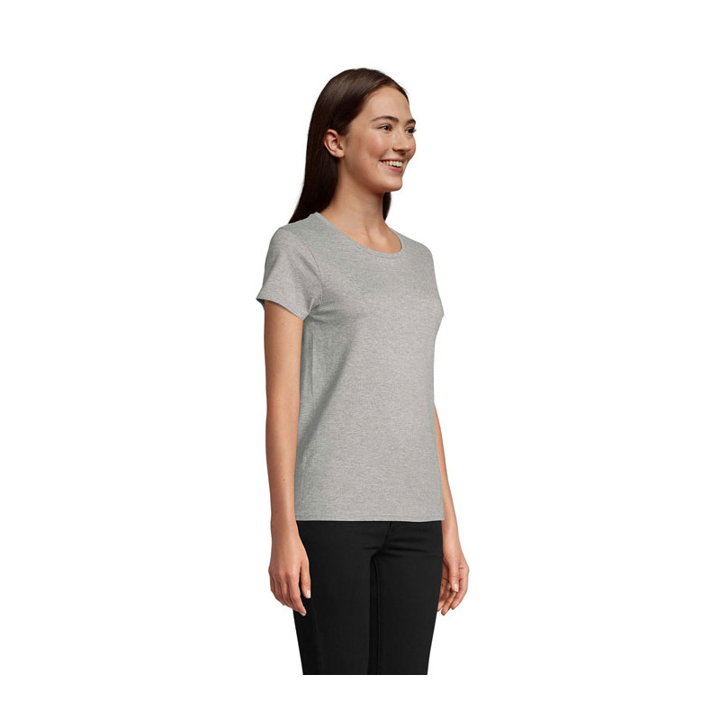 SOL'S CRUSADER WOMEN, women's Round-Neck Fitted Jersey T-Shirt, 100% Organically Grown Cotton, Natural Finish For A Softer And Smoother Feel Jersey 150, 100% Cotton Ribbed Collar, Round Neck, Neck Tape, Fitted Cut, Tubular, (1) Heather Light Green : 60 % Organic Cotton / 40 % Recycled Polyester, (2) Heather Pink : 60 % Organic Cotton / 40 % Recycled Polyester, (3) Heather Beige : 60 % Organic Cotton / 40 % Recycled Polyester, (4) Ash : 98 % Organic Cotton / 2 % Viscose, (5) Grey Melange : 85 % Organic Cotton / 15 % Viscose. About Sizes Matching, Please Refer To The Size Chart In The Product Documentation Section.