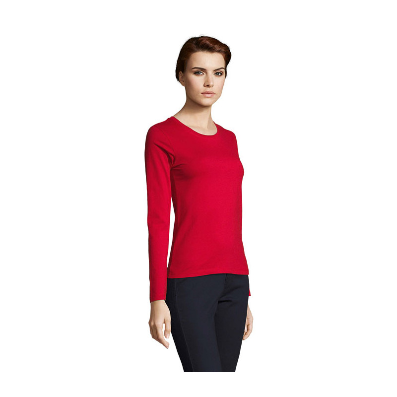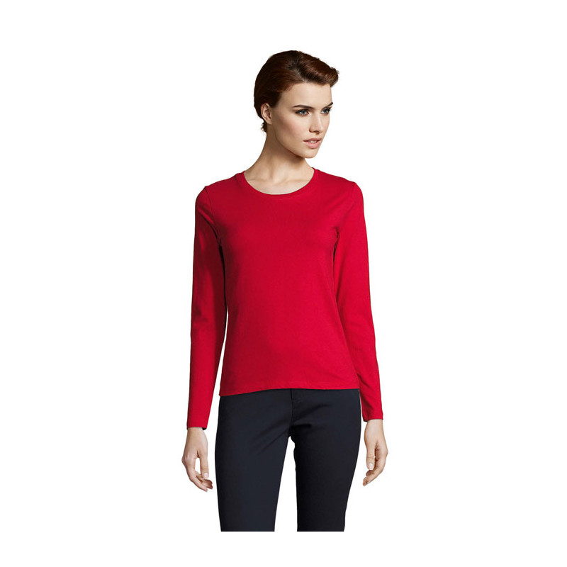SOL'S IMPERIAL women's t-shirt 190g. Round neck with elastane. Long sleeves. Cut and sewn. Fitted cut. Tape inside the collar. Fabric details: 100% semi-combed Ringspun cotton. OEKO-TEX®. Only Sold with Print.