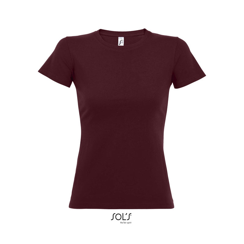 SOL'S IMPERIAL Women's T-shirt 190g/m². The Imperial for women has become the reference T-shirt of 190 gr/m², thanks to its finishes, quality, 25 colors, and 12 sizes. 100% semi-combed ringspun cotton, reinforced tape at the neckline, ribbed neckline finish, short sleeves, side seams