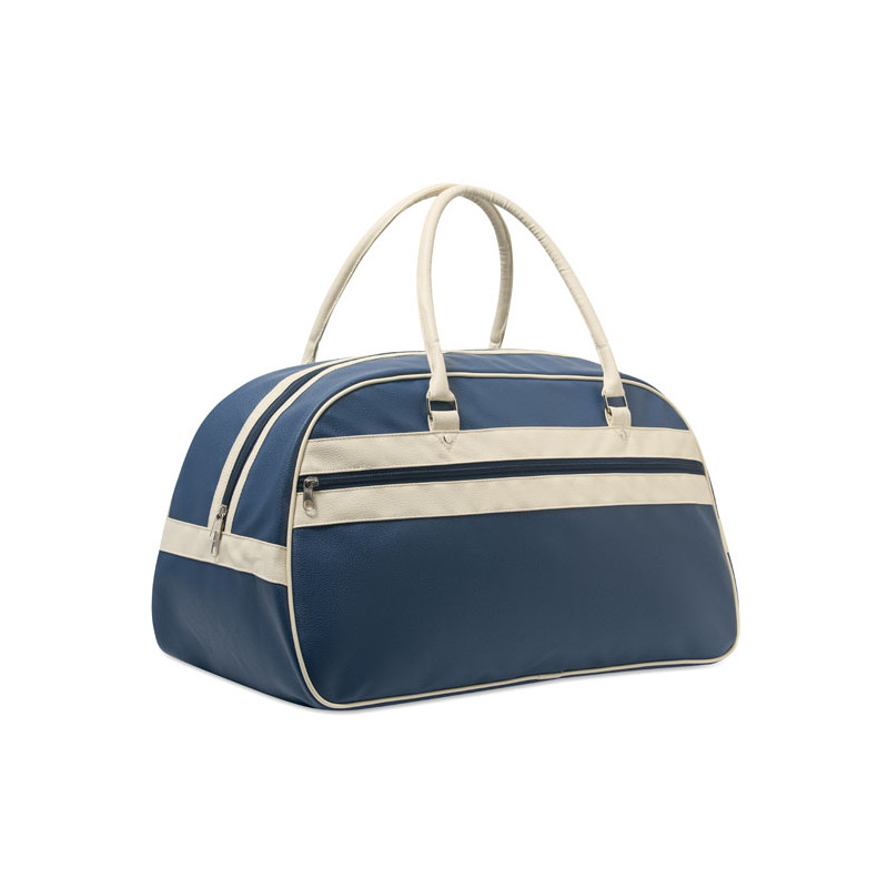 PU sports bag, inner lined, main compartment and zipped pocket, sturdy handles, base inlay and studs. Capacity approx. 21.5 litres.