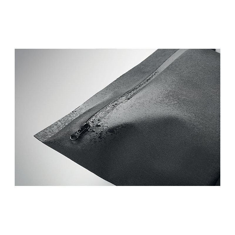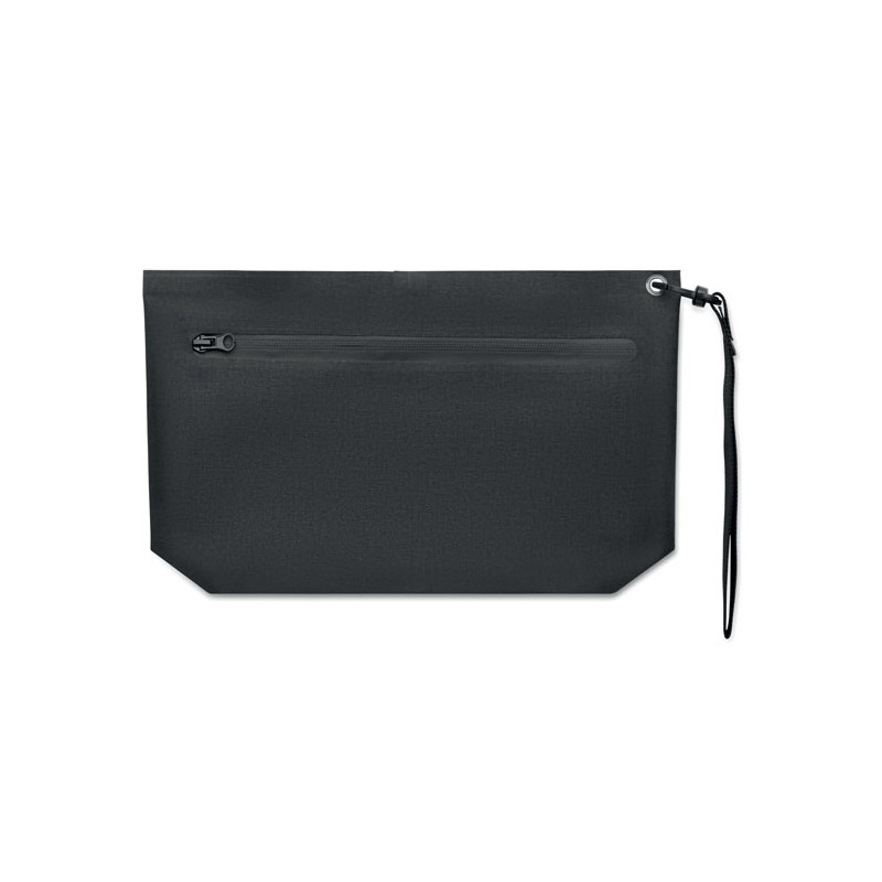 Personal item or documents pouch in 300D RPET and PVC coating with hand straps. Water-resistant fabric.