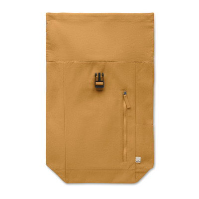 Roll-top backpack made of recycled cotton (80%) and recycled polyester (20%). Includes a front pocket with a zip closure. Practical, durable, and eco-friendly.