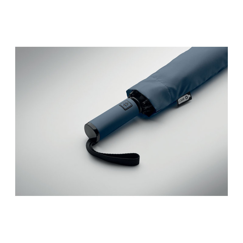 23" rPET umbrella for sustainable personalized gifts. This choice in promotional gifts combines a premium finish with the durability your brand deserves.