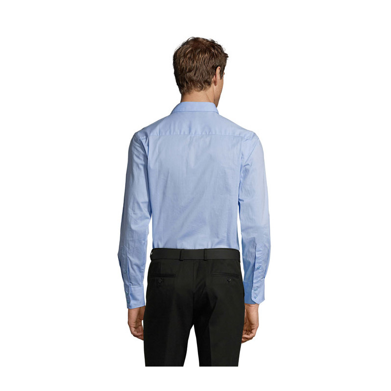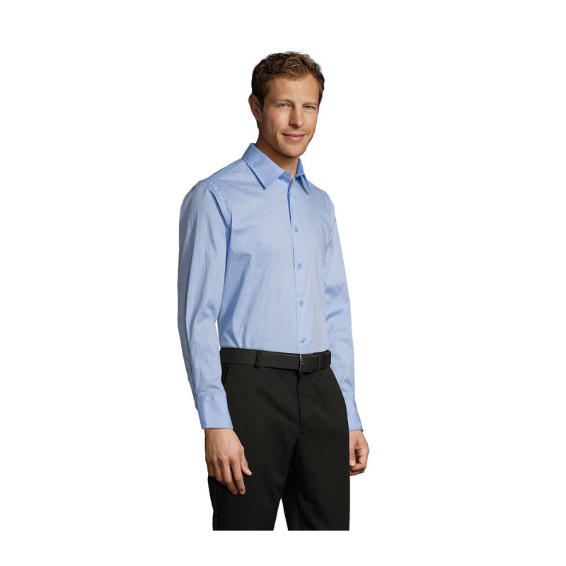 SOL'S BRIGHTON, long sleeve stretch men's shirt, 97% cotton - 3% elastane poplin stretch 140, fitted cut, long sleeves, single button collar, cuffs with 2 buttons and bound slit, 7 tone-on-tone button placket. About sizes matching, please refer to the size chart in the product documentation section.