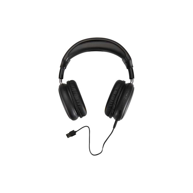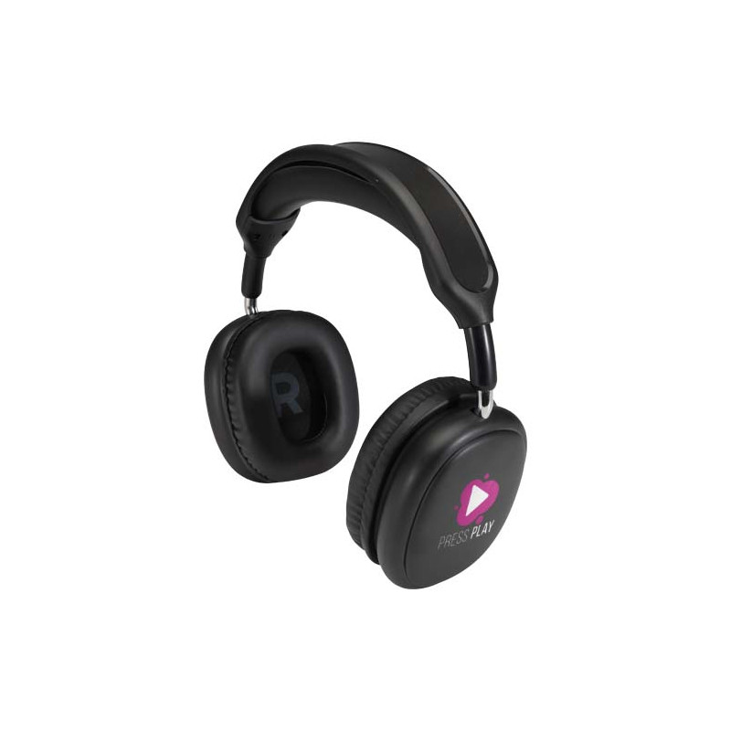 Combine style and performance with the Alzir Bluetooth® 6.0 wireless over-ear headset. Made from recycled plastic, it features a sleek design, built-in microphone, and easy-to-use control buttons. The headset offers up to 12 hours of talk or play time and recharges in just 1–2 hours. A 30 cm USB-A to Type-C charging cable is included.